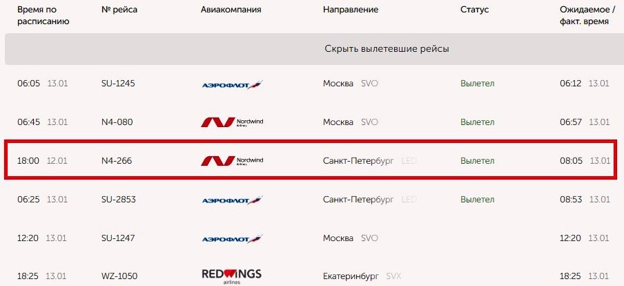 13.01.2025Вылет из Оренбурга несколько раз откладывали, а сам рейс прибыл с большим опозданием из-за снегопадов в Пулково. В результате самолёт отправился в Санкт-Петербург не в 18:00 12 января, а только сегодня в 08:05.