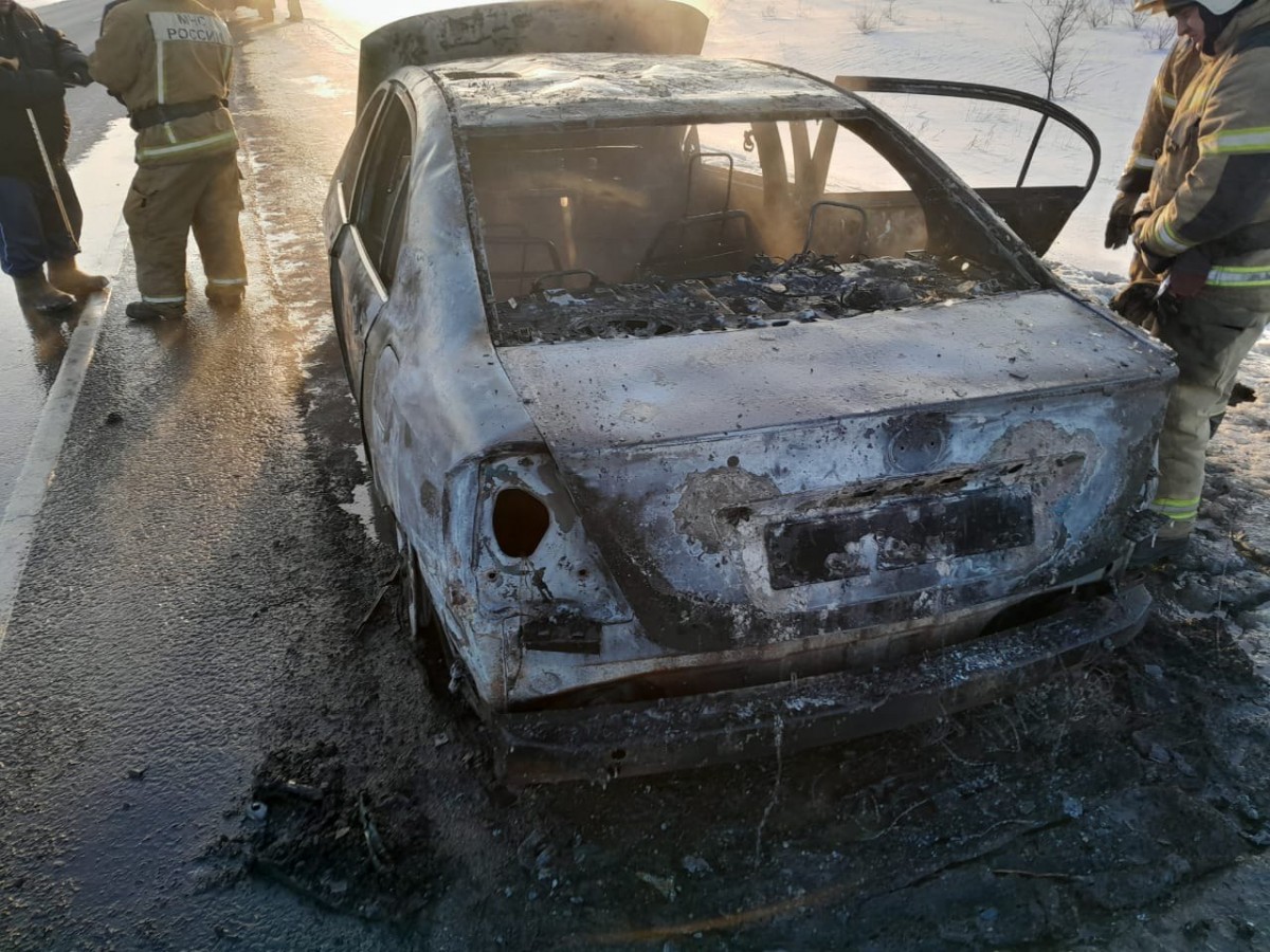 На трассе Оренбург-Илек сгорел автомобиль