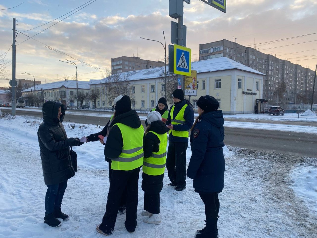 Стражи порядка совместно с волонтерами напоминали пешеходам о правилах перехода проезжей части и попросили их быть внимательными и осторожными на дорогах в зимний период.