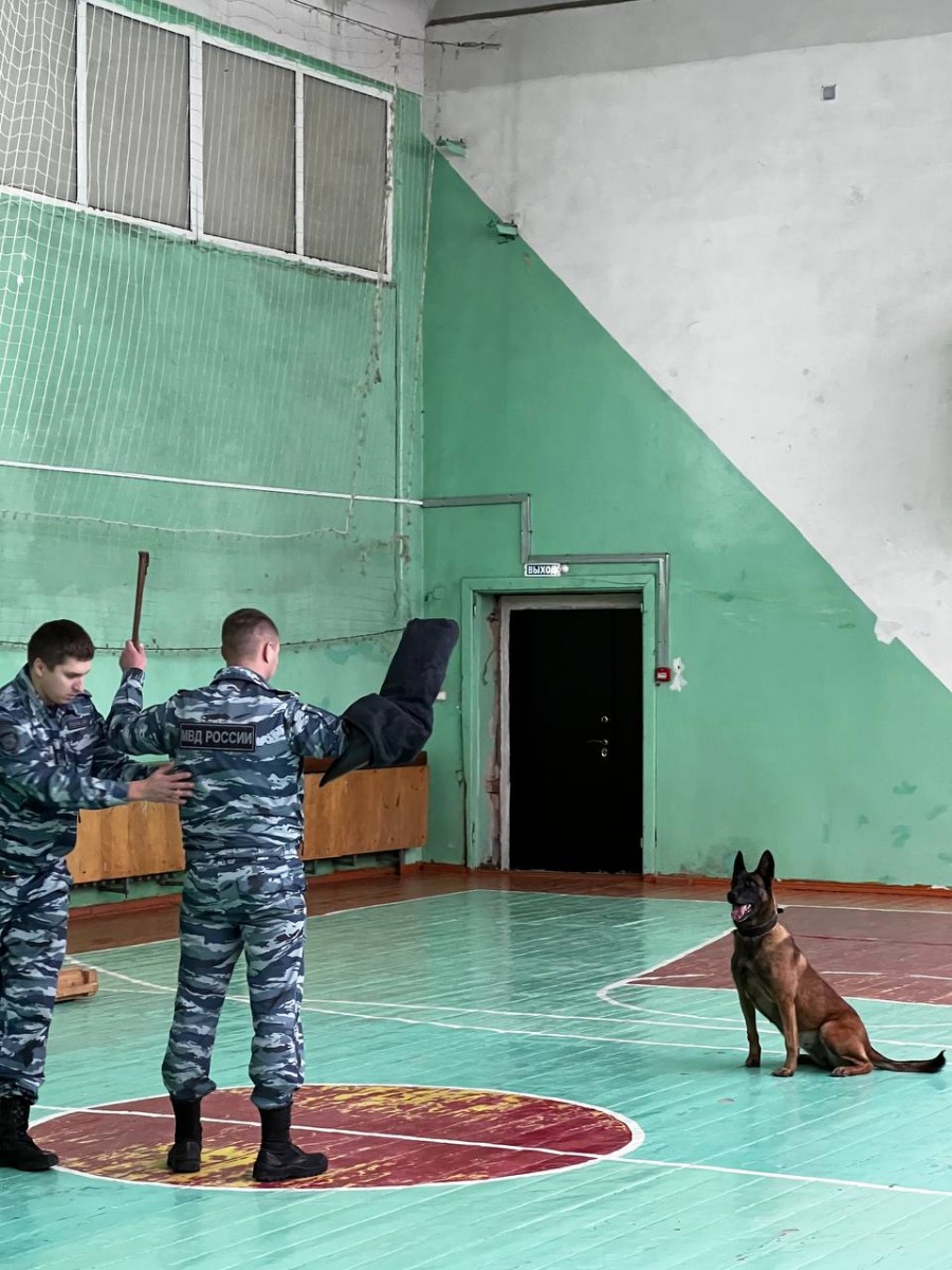 В спортивном зале развернулось представление. Кинологи вместе со служебной собакой «Джесси» продемонстрировали учащимся отличные навыки и выучку по поиску и обнаружению «закладок», имитирующих наркотические вещества. Также полицейские вместе со своим четвероногим напарником показали слаженные действия и мастерство при выполнении упражнений и прохождения полосы препятствий. Молодые люди были поражены с какой точностью служебная собака выполняет команды специалиста-кинолога. Самым интересным и захватывающим была демонстрация приемов задержания и конвоирования.