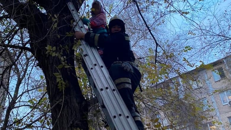 Спасатели прибыв по указанному адресу поднялись к ней по лестнице и спустили ребенка.