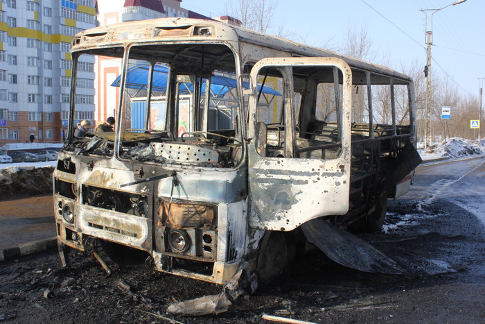 В результате возгорания автобус сгорел полностью.