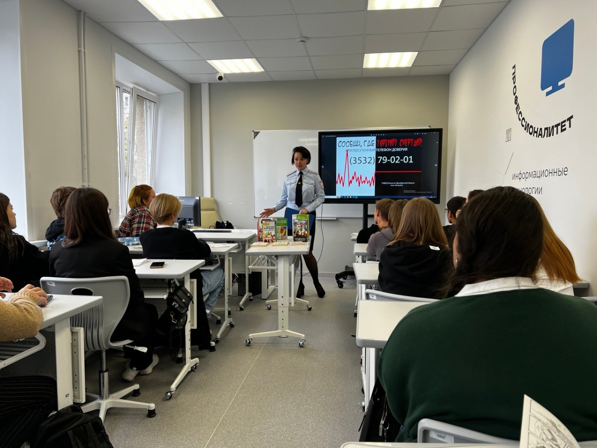 В рамках акции «Сообщи, где торгуют смертью» 20 октября 2023 года сотрудники УНК УМВД России по Оренбургской области совместно с представителем выездного читального зала Оренбургской областной полиэтнической детской библиотеки провели профилактическое мероприятие со студентами Оренбургского колледжа экономики и информатики.