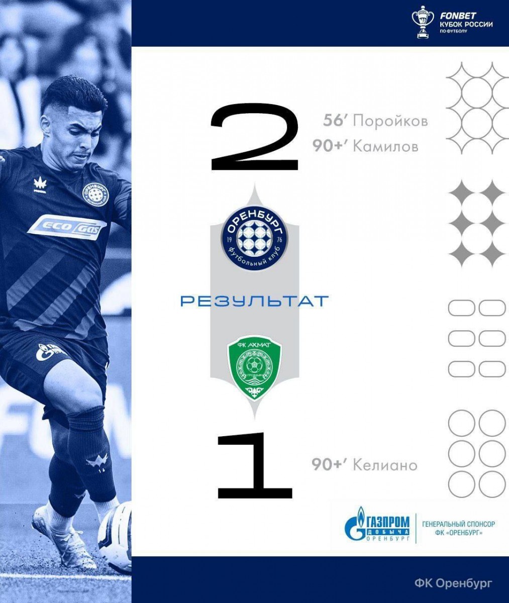 «Оренбург» одержал победу над «Ахматом» в Кубке России