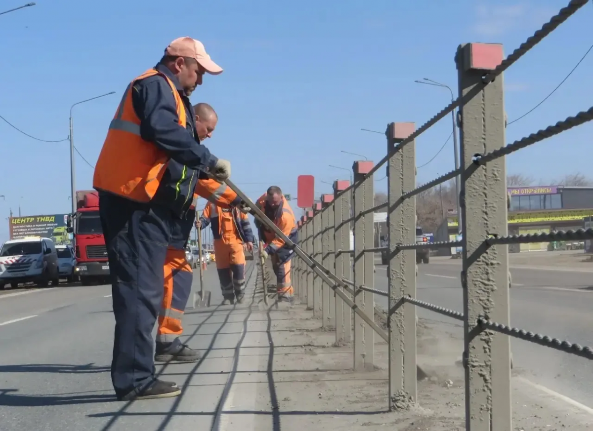 Специалисты АО «Оренбургремдорстрой» очищают ограждения, тросы и световые опоры. Они также выравнивают обочины автогрейдерами и убирают мусор вдоль дорог.