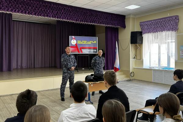 27.04.2026В рамках мероприятий, посвященных 10-летию со дня образования Росгвардии и 215-летию формирования войск правопорядка, росгвардейцы провели урок мужества для учащихся гимназии № 7 города Оренбурга. В ходе встречи росгвардейцы ознакомили школьников с историей создания Федеральной службы войск национальной гвардии Российской Федерации, рассказали об основных целях и задачах вневедомственной охраны. Учащиеся ознакомились с видеороликом об этапах развития и становления современной Росгвардии.