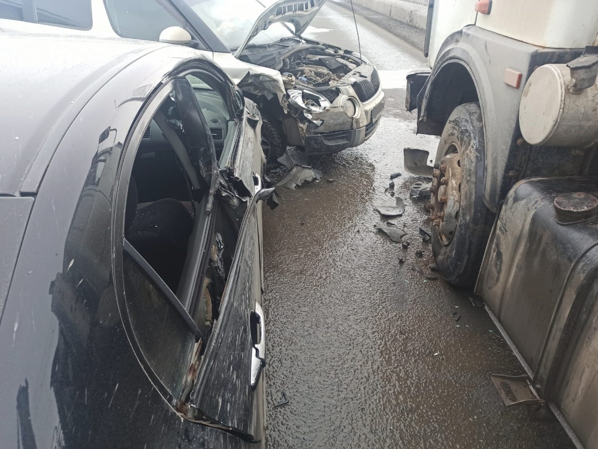19.03.2024Прибывшие на место происшествия сотрудники ГИБДД предварительно установили, что 32-летний водитель автомобиля Honda Civic, двигаясь по средней полосе улицы Терешковой со стороны проспекта Дзержинского в сторону улицы Конституции СССР, при перестроении в крайнюю правую полосу столкнулся со стоящим на проезжей части в крайней правой полосе с включенной аварийной сигнализацией автомобилем МАЗ-6422А8 в сцепке с полуприцепом Robust-Kaiser, которым управлял 43-летний водитель. После столкновения автомобиль Honda Civic отбросило на автомобиль Skoda Yeti, которым управлял 47-летний водитель.