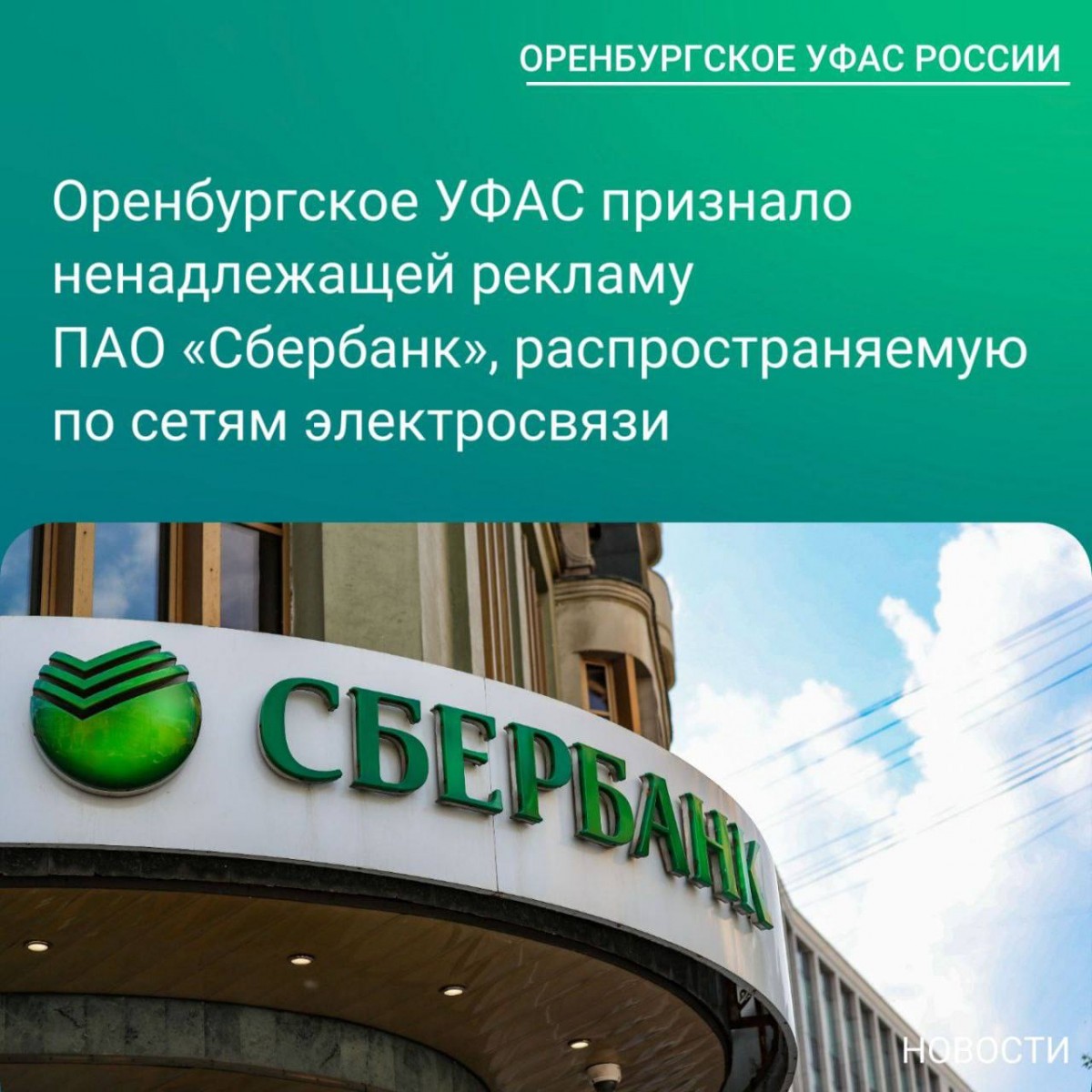 13.09.2025Антимонопольная служба Оренбургской области признала рекламу ПАО «Сбербанк», распространяемую через сети электросвязи, ненадлежащей.