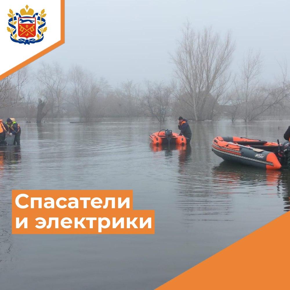 Также спасатели доставляют электриков к местам проведения аварийно-восстановительных работ и обеспечивают их безопасность на воде.