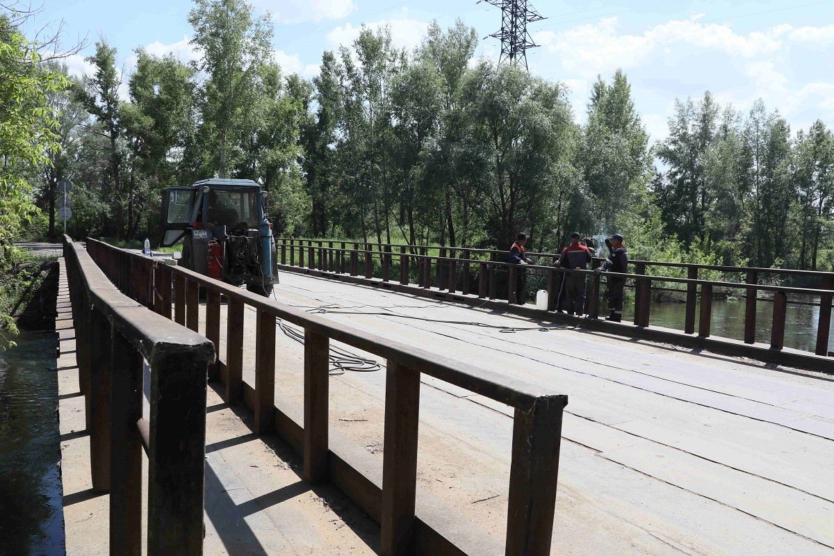 — Ближний мост после спада воды был довольно сильно повреждён. Силовые элементы не пострадали, а вот покрытие и перильные конструкции требовали вмешательства ремонтников, ограждения отсутствовали полностью, — рассказал главный специалист ремонтно-механического управления Руслан Закиев.