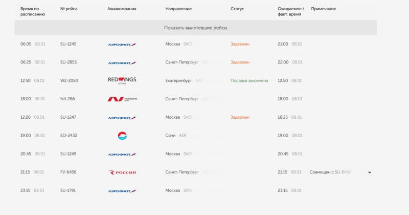 Кроме того, задерживается утренний рейс в Санкт-Петербург, который должен был отправиться в 6:25. Время вылета перенесено на 22:00.