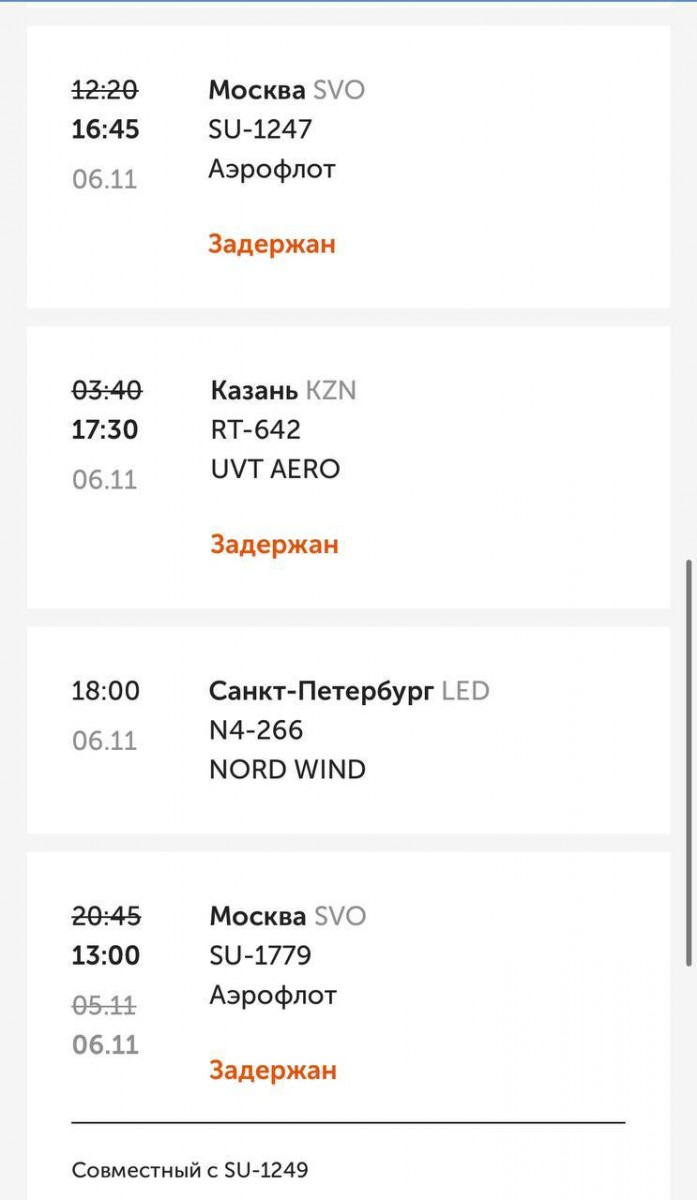 Причиной всех этих задержек стала нелётная погода.