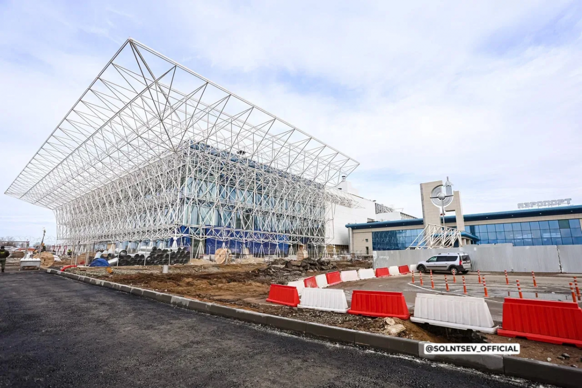 Над проектом трудятся две компании: АО УК «Аэропорты Регионов» и ООО «Новапорт Холдинг». Сейчас монтируют декоративный фасад и проводят внутренние отделочные работы. Уже установили четыре телетрапа.