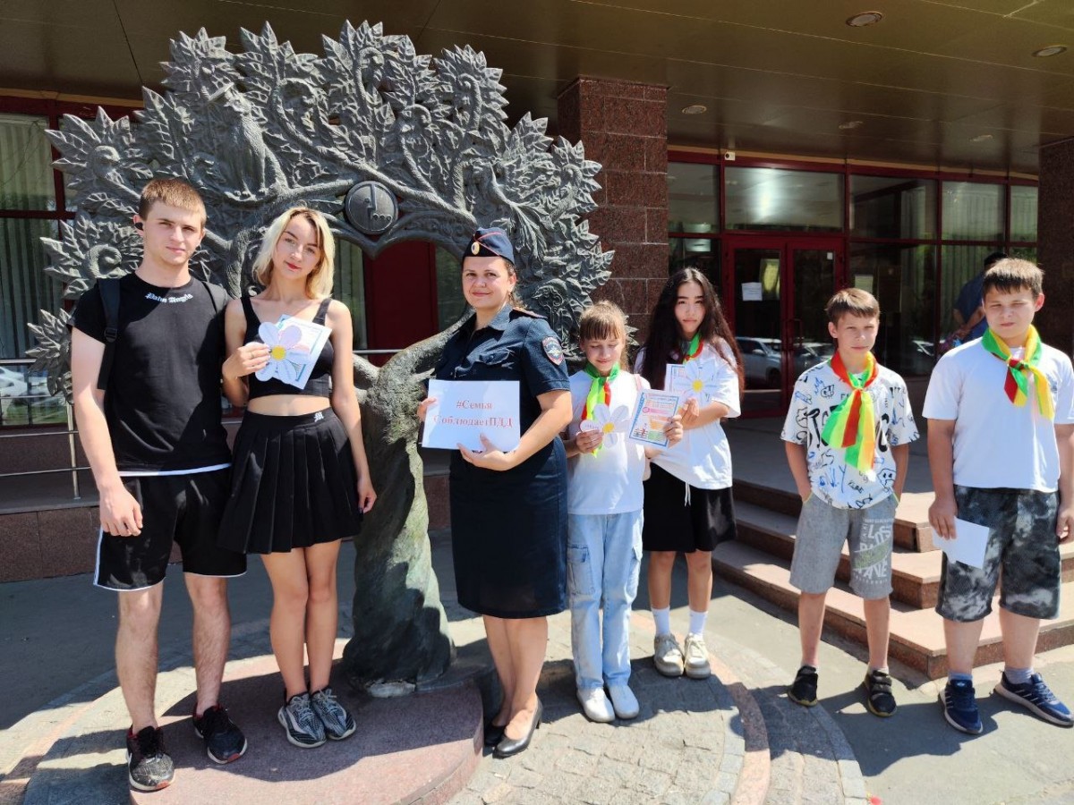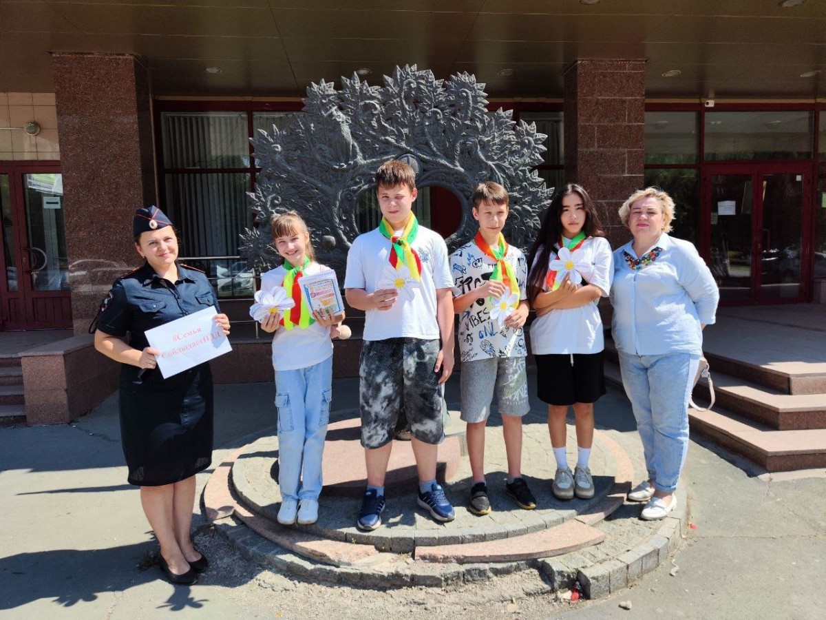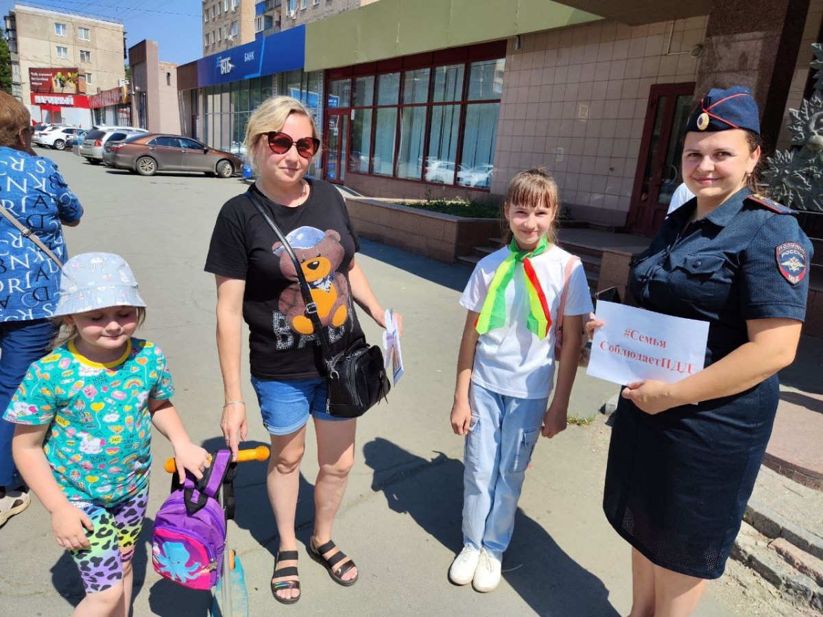 05.07.2024Накануне празднования Дня любви семьи и верности сотрудники Госавтоинспекции МУ МВД России «Орское» совместно с руководителем детского центра «Светофор» Натальей Орловой и отрядом ЮИД СОШ №28 г. Орска провели информационно-пропагандистскую акцию «Семья соблюдает ПДД».
