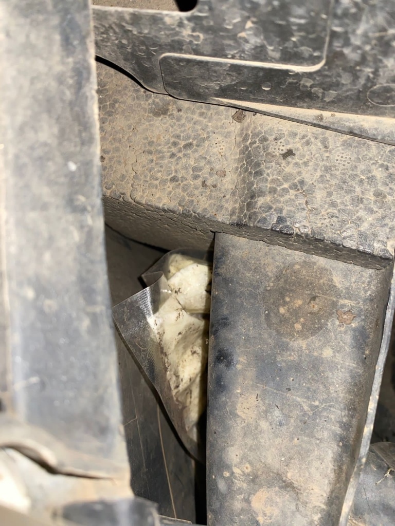 Прибывшими на место происшествия сотрудниками следственно-оперативной группы установлено, что задержанный прятал запрещенное вещество в тайнике, расположенном в абсорбере переднего бампера легкового автомобиля.