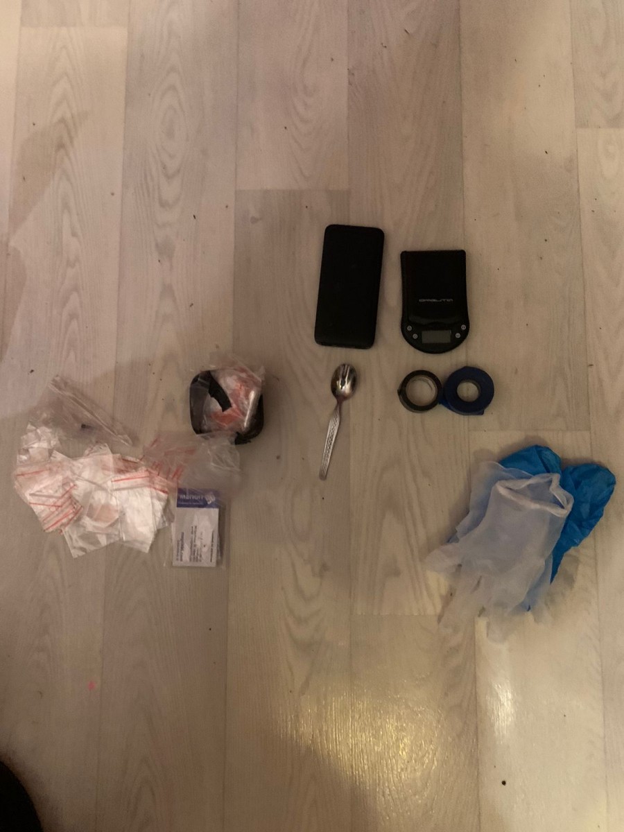 Задержанный рассказал, что хранил оптовую закладку «синтетики» с целью дальнейшего сбыта через тайники-закладки. Также изъяты электронные весы, фасовочный материал, перчатки.