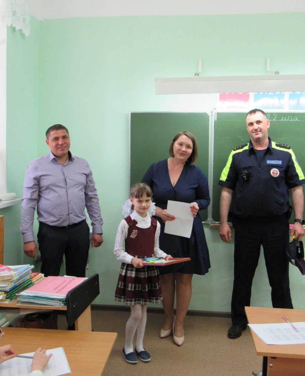 22 мая в преддверии Дня защиты детей представители Общественного совета при МО МВД России «Абдулинский» Марина Мурзакова, Ринат Хамидуллин совместно с сотрудником ОГИБДД Александром Котовым посетили школу № 3 г. Абдулино, где поблагодарили и наградили участников конкурса.