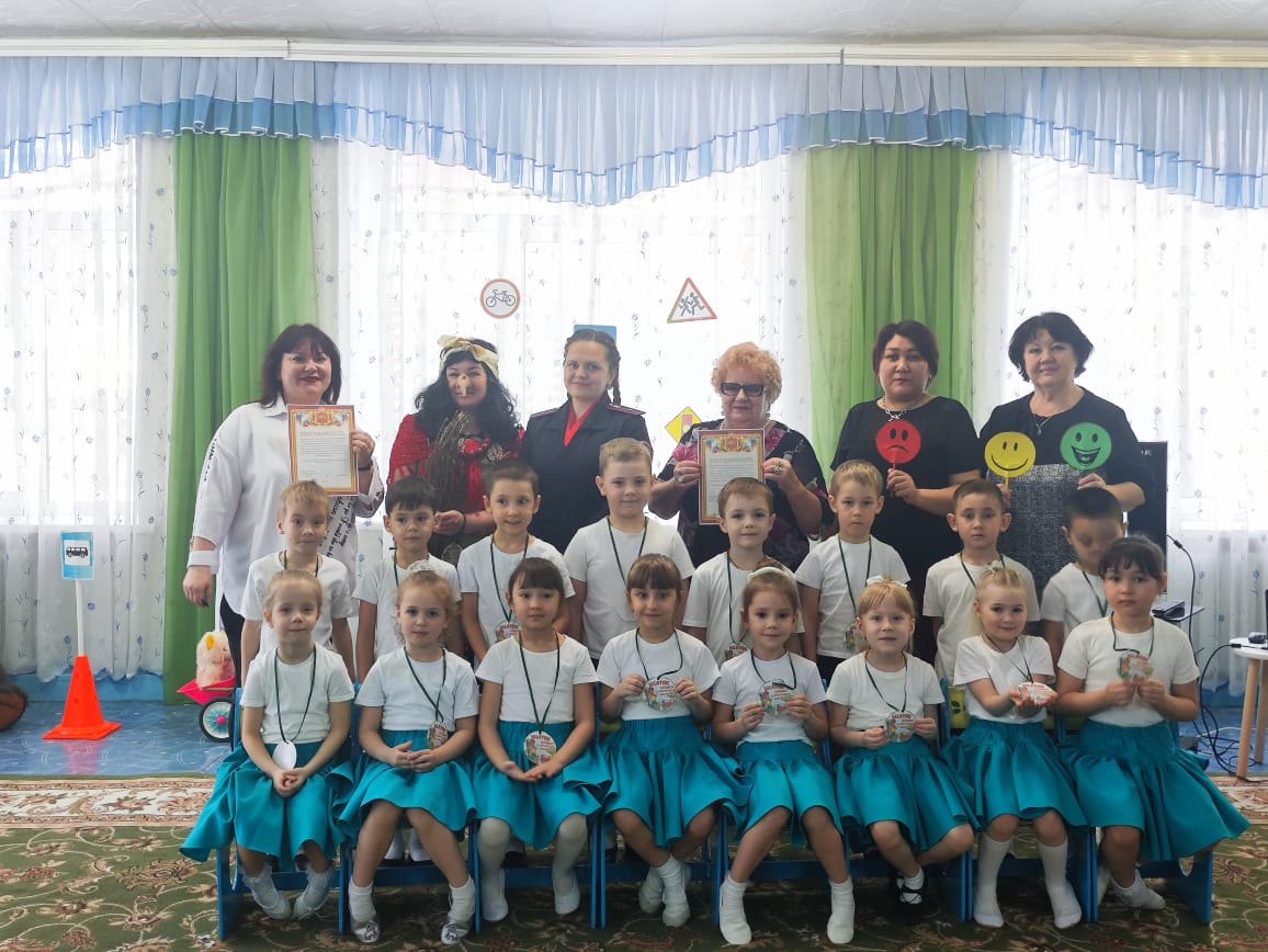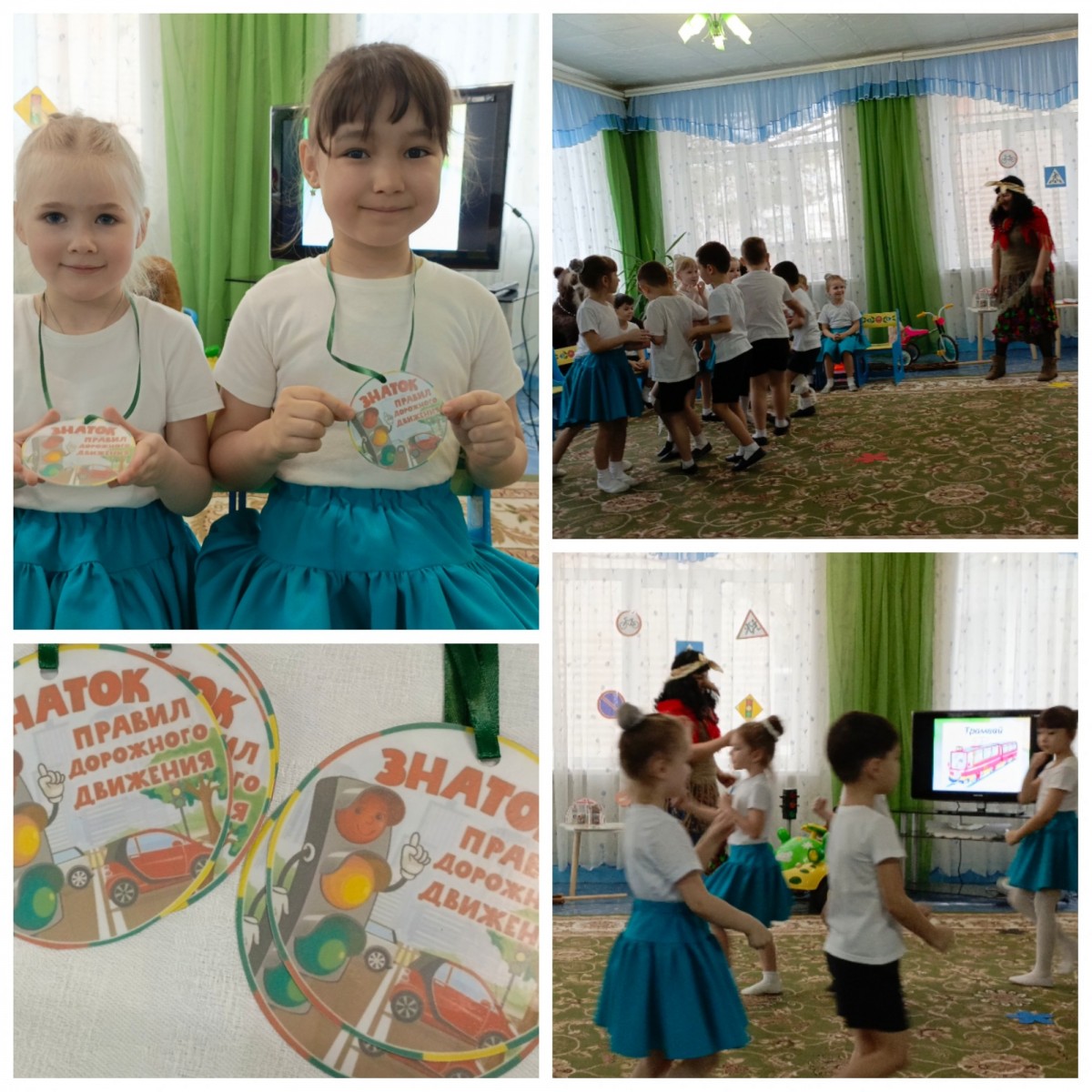 Для ребят была организована целая программа обучения, которая включала загадки по ПДД, танец «Трамвай», эстафету «Первая помощь» и игру «Что это за знак?».