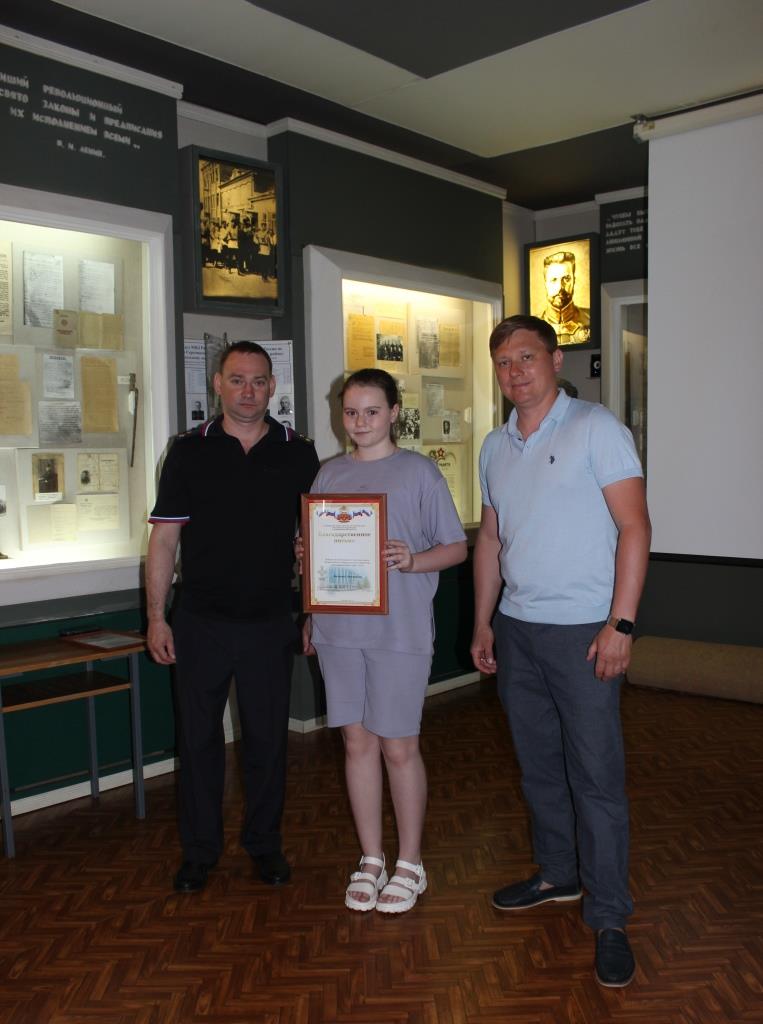 31.05.2023В преддверии Международного дня защиты детей в музее Культурного центра УМВД России по Оренбургской области представитель Общественного совета при областном УМВД Денис Терсков вручил дипломы и призы победителям регионального этапа Всероссийского конкурса детского творчества «Полицейский Дядя Степа - 2023».