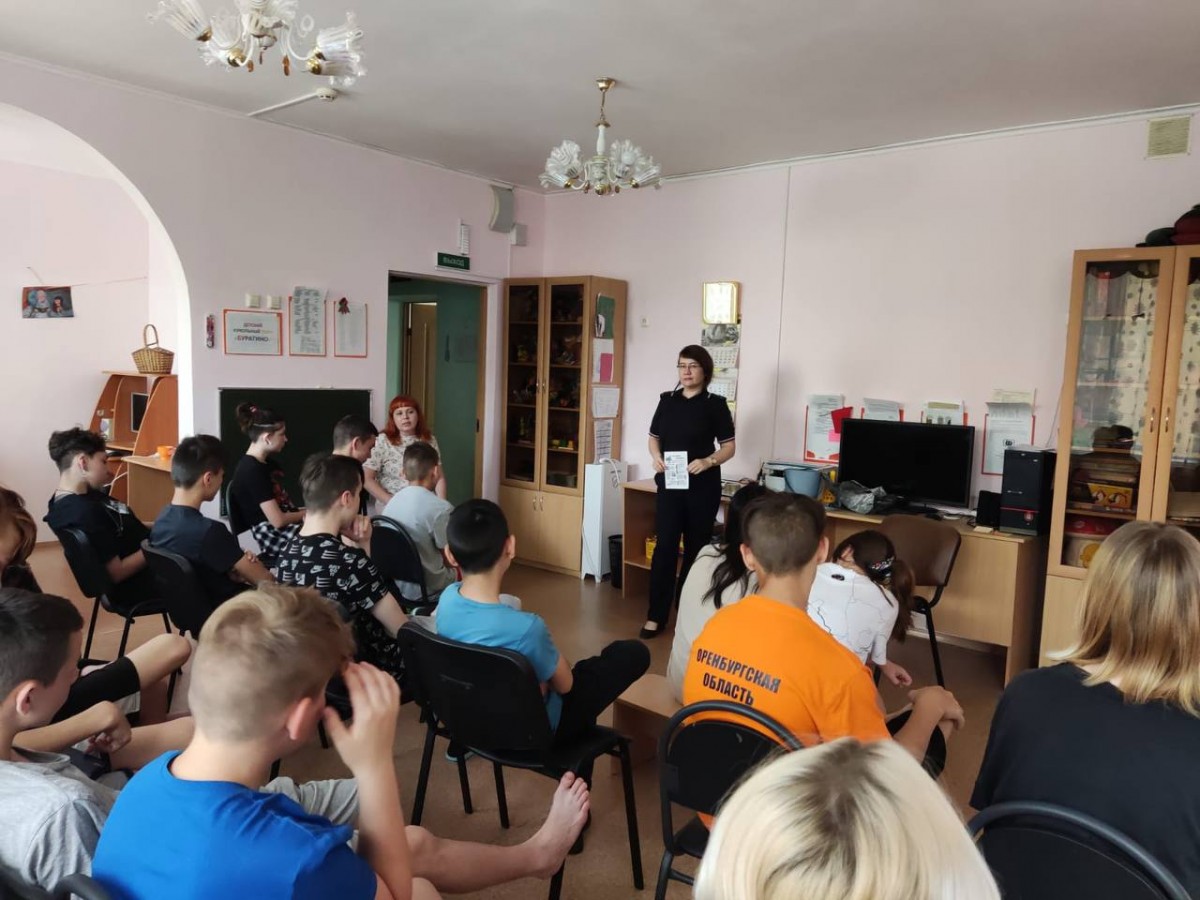 07.06.2023Инспектор отделения УУП и ПДН МУ МВД России «Орское» в рамках ОПМ «Защитим», а также «Дня правовой помощи» проводит с детьми разъяснительную работу.