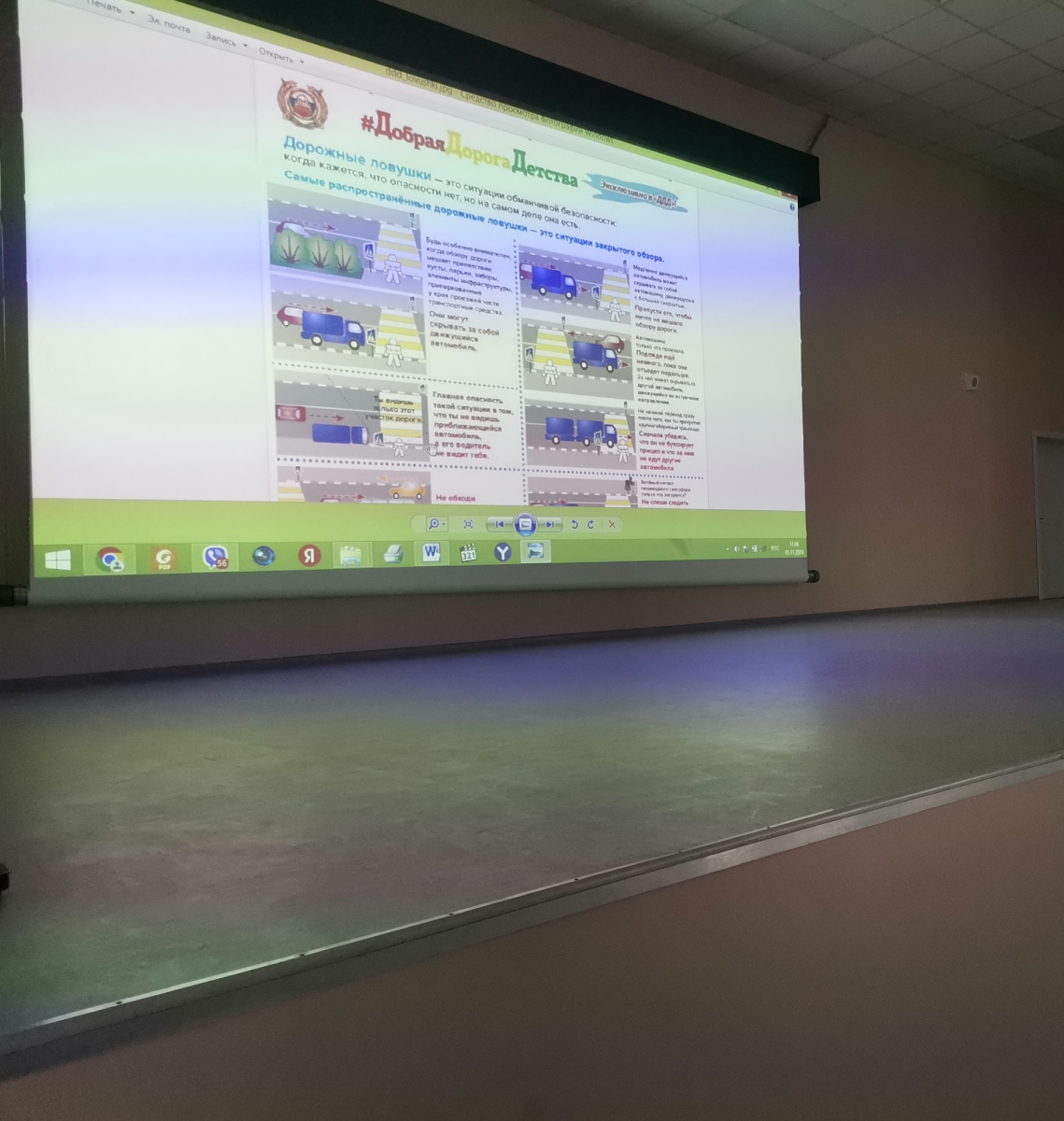17.11.2024Детям рассказали о том, как не попасть в беду на дороге, что значит «слышать дорогу», почему нельзя неожиданно выбегать на проезжую часть, какие опасности могут поджидать во дворе.